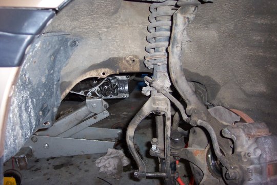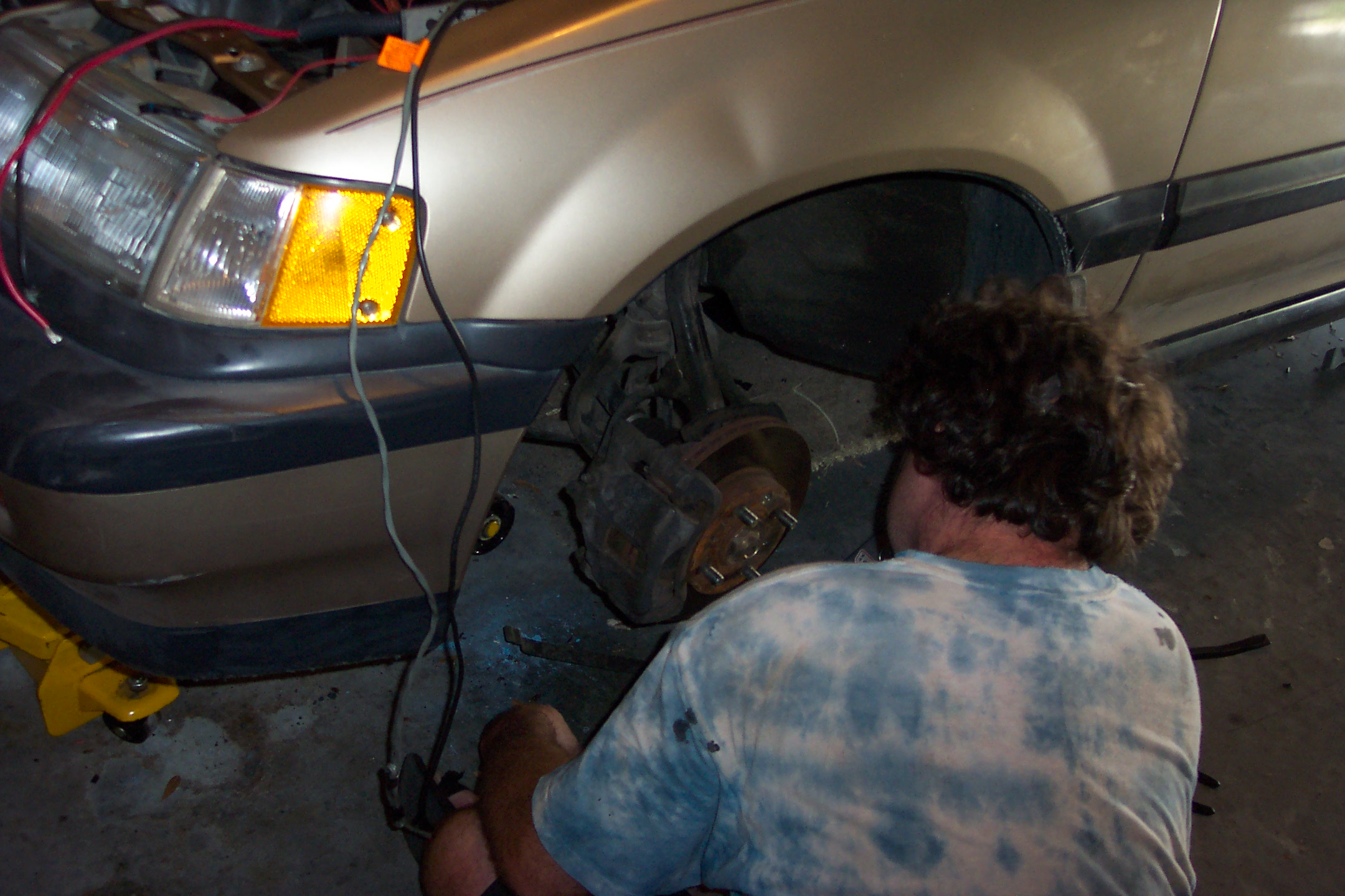 I'd like to report that, in Junkyard Wars style, it worked. But in fact we just bent a washer. Luckily, my next-door neighbor is an ex-mechanic, and he's going to lend us a puller after he retrieves it from his shop. I may stop by the Advance Discount Auto Parts and see if they'll lend me one, too.