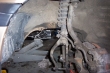 Finally, four hours later, as we think we've got it, we don't. The torsion bar is supporting the end of the motor, so we can lever it off the transmission shaft and slide it away.