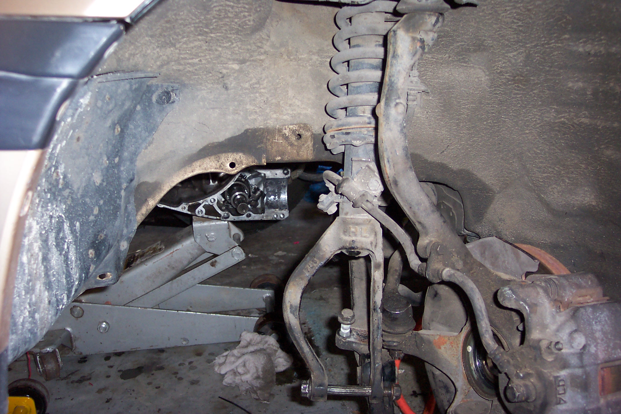 The problem is that Nathan originally installed the motor and the tranny together, from the top with a hoist. We don't have a hoist, so we want to drop it out the bottom.