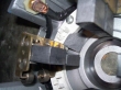 We pulled the spring clips back onto their retaining notches, reseated the endcap over our new hole, reseated the spring clips to provide friction so the cap wouldn't move easily, and drilled with Nathan's special extra-long 17/64" drill bit. Then we pulled the endcap off and tapped the new hole.