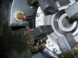 Rather than drilling the last bot freestyle, we replaced the endcap and used the bolt hole as a guide. That's when we noticed that the brushes were spring loaded, and removing them could've been easier if we'd pulled the spring clips first. We also found that we'd flaked a big chip off one crush and chipped another. (Could someone with more EV experience than me look at these? Do I need new brushes? Jim?)