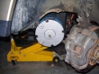 Nathan agreed with my assessment on the axle, though: it would need to be removed before we could drop the motor any farther. We attacked it with pry bars. It was a bear, but within 30 minutes we had it out.