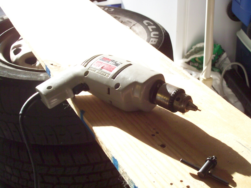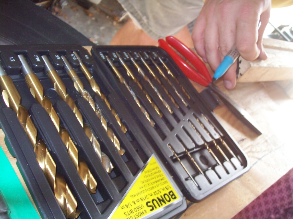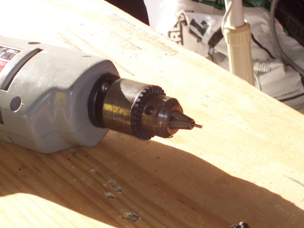 As I was gently drilling that hole, I saw the bit wobbling all over the place. I decided that Nathan's drill was the reason that we'd been breaking bits left and right. I christened it "Bitcrist", and we went to Lowe's to buy some tools.