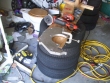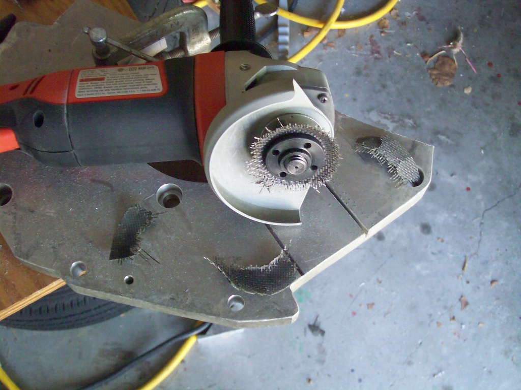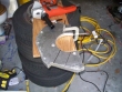 I set everything up, clearing out plenty of space so nothing would get burned by molten sparks. I attached the 5/8 x 4" wheel, measured to be sure it would cut through the aluminum, and started cutting.