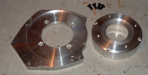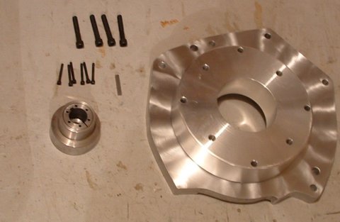 You would think that after installing the adaptor, any reasonable person would call it a day and go have a beer. But no, Nathan goes on to install the clutch, too. Actually putting the whole assembly should be delayed until he can get some bolts to attach the adapter to the transmission: