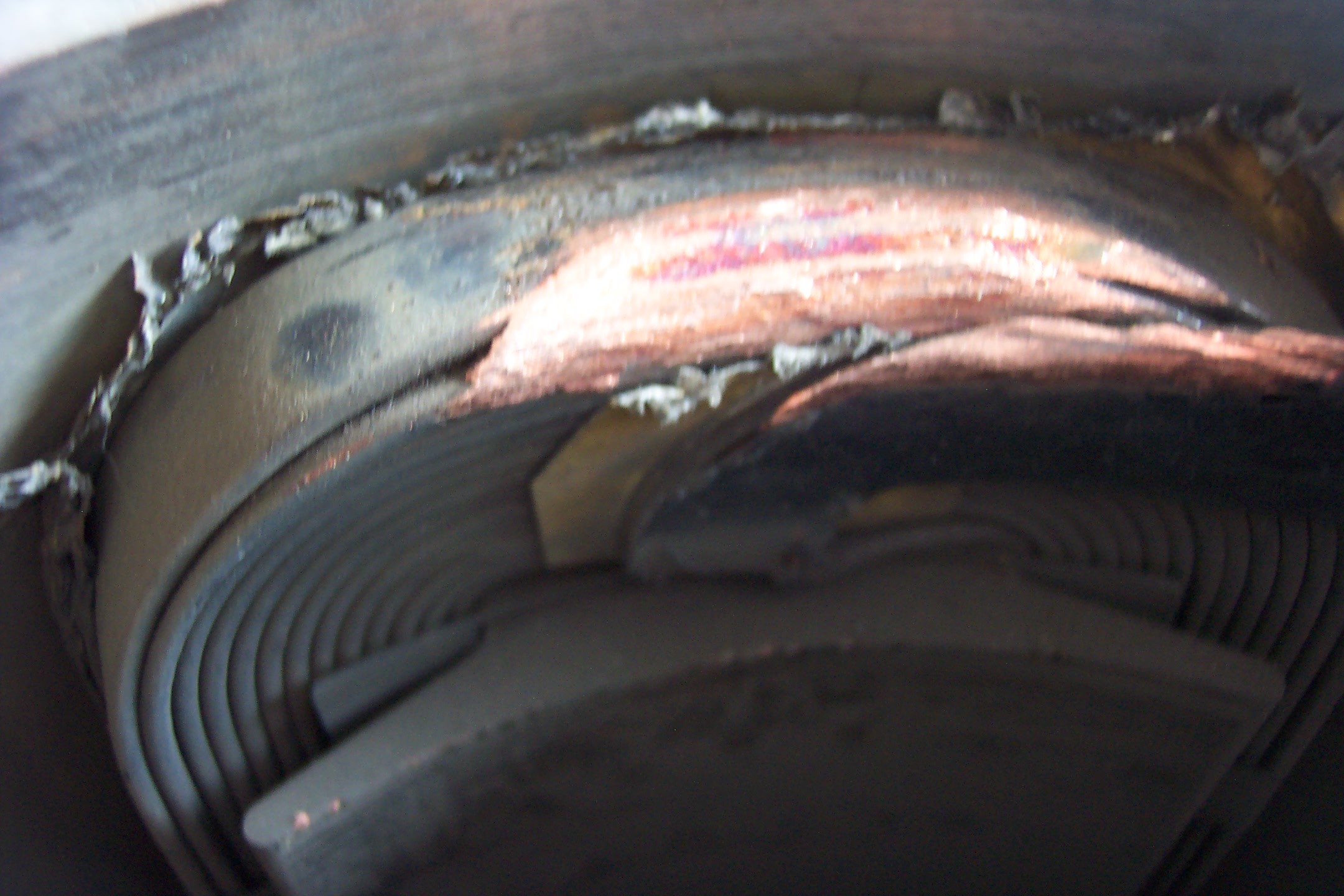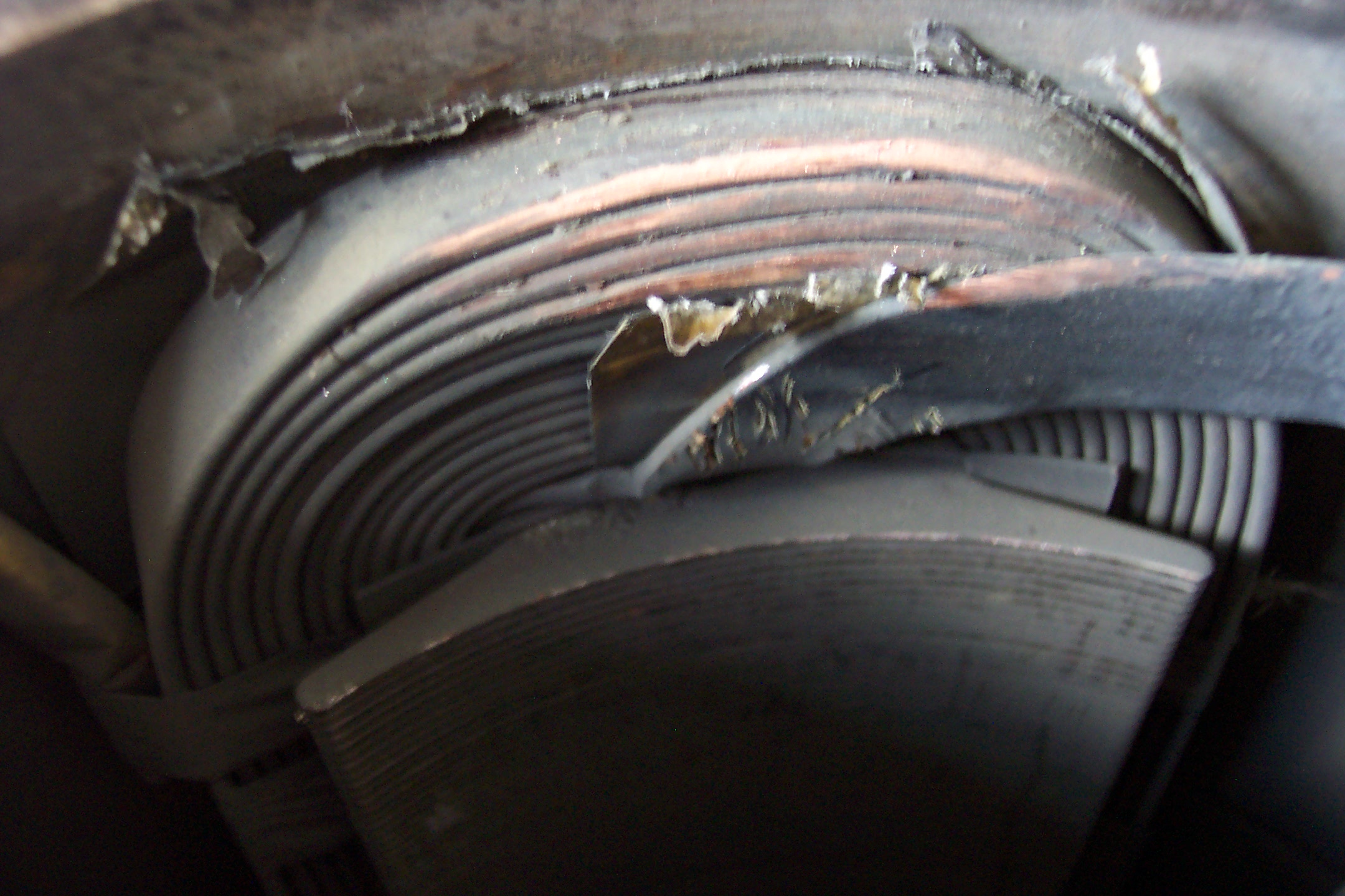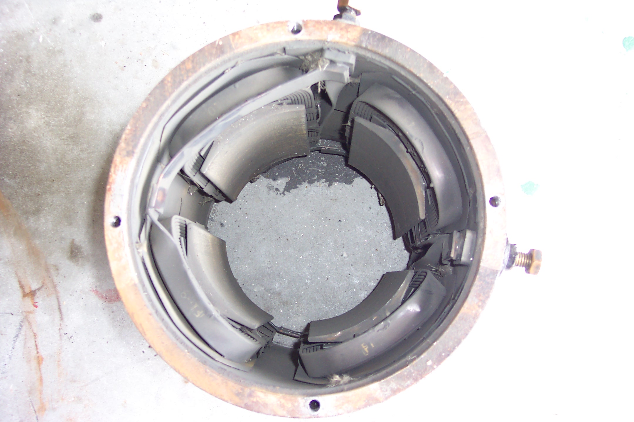 With a prybar, a giant screwdriver, and a hammer, getting the centrifugally-exploded wires bent upwards was no great task. A little time-consuming, but no big deal. And it let me get pictures of the field coils.