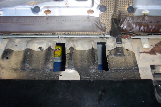 Frankly, it's embarrasing how long it took for us to do this. We planned, replanned, gathered materials, and tossed our plans out the windows in the face of physical evidence. We drilled pilot holes, moved batteries around, put in partial packs for fit, and tossed the new plans, too. Finally we gave up: we can't cut holes for all four terminals of these batteries, unless we cut the entire rear sheet metal out. (I believe the racers call this "tubbing" the car.) Then we'd need to replace structural members, make a place for seat belts and hinges to mount, and make a stop for the seat to rest on.