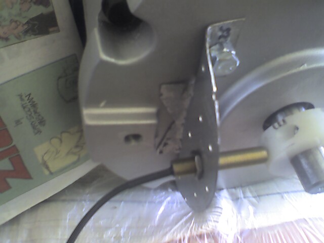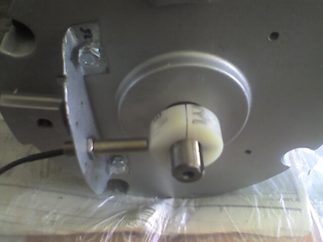 Lastly, I tried to install the tach sender. This would have told me I was revving too fast, and prevented me from blowing the motor up in the first place. (A rev limiter would be better, but I'm still looking for one that'll work with an EV.) The magnet collar I got from EVParts.com went on with no problem. The tach sender itself is a threaded 3/8" screw, and there's no place to mount it on the back of the motor.