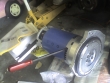 I had also obtained a lightweight flywheel and clutch kit. The flywheel provides a friction surface for the clutch, so you can smoothly connect the motor to the wheels. In the original car, it also keeps the motor turning while the pistons aren't firing. Heavier flywheels make for a smoother ride, while lighter ones allow better acceleration. Since the electric motor has no pistons and doesn't need to be kept moving, I chose the lightest flywheel I could find: 7.5 pounds. I was going to pull off the ring gear and get it balanced, but that cost too much for my budget.