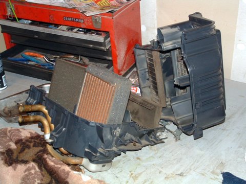Of course, that means the heater box has to come out, and that means tearing apart the dash. That's the easy part. Putting it back together, that's the trick.