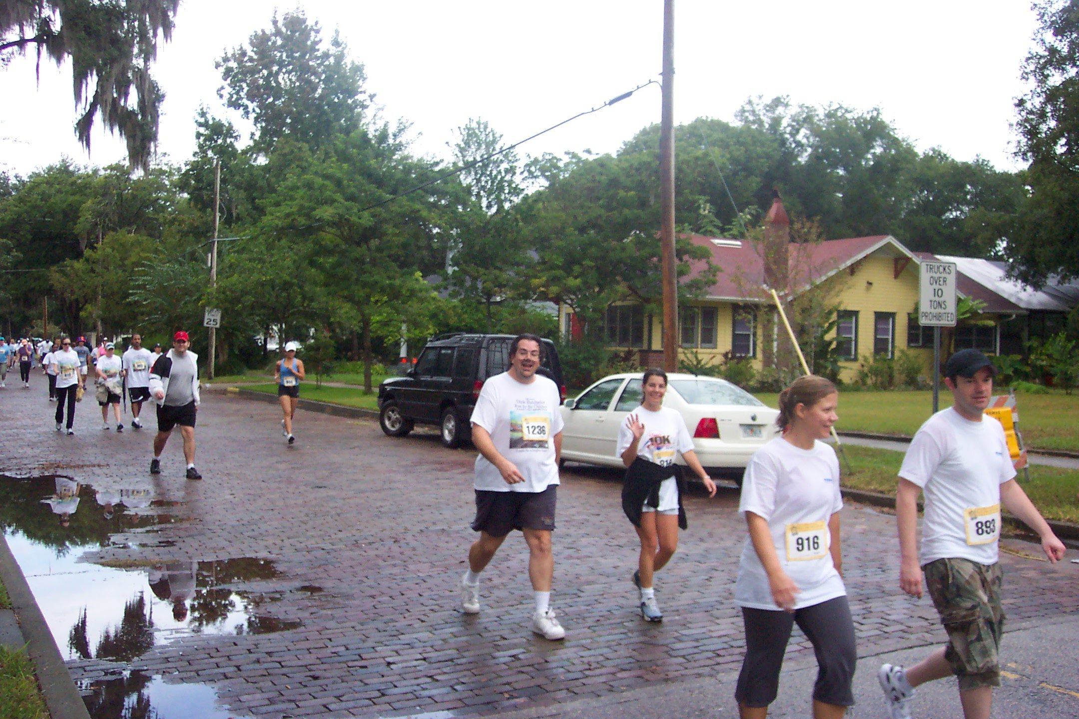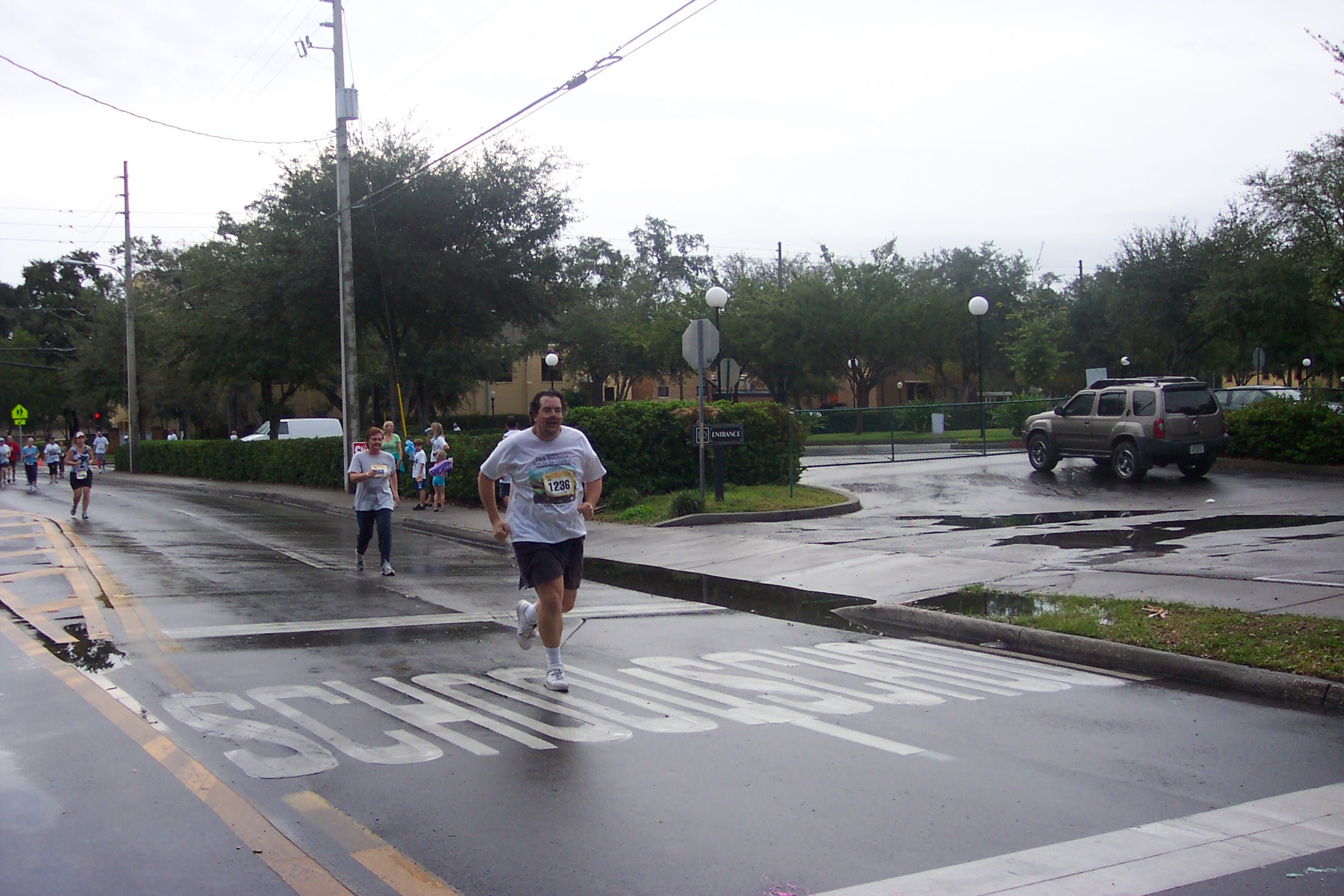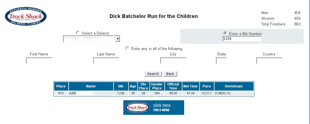 So what makes a 280-pound man stand in the rain to get a number and walk more than 3 miles on a wet day? I wanted to see if I could do it. I showed myself that I can. And I got to see some neat technology at work! The "championchip" is a dinky piece of plastic that they tie to your shoes. When you cross over a sensor, it figures out who you are, and from that it can tell you how fast you're going. Or where you've placed. And it can print up a result screen instantly, like this one. I thought it was neat.