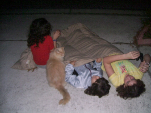 As you can see from the very blurry picture, they behaved perfectly, despite the lateness of the hour. They shared the two pairs of binoculars, the blanket, and the cat with no whining or complaining.