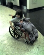 When we got to Arnold Palmer, she was feeling better. She loved tooling around in the kid wheelchairs. She identified her pain face on the low end, and we got triaged last.