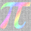 For Pi Day, we made t-shirts. It's the first 10,000 digits of Pi (including the integer part and the decimal point) arranged in a 100x100 square. The greek letter Pi is imposed as a rainbow over some of the digits.
