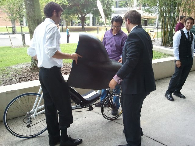 This team, which included mechanical and aerospace engineers, decided to participate in a human-powered vehicle race. They decided to go with a recumbent tricycle, which allows the rider to provide more power without worrying about balance.