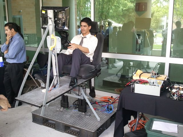 But these guys brought it over the top! They added accelerometers to the model car, which tell them the orientation of the car at any time. Then they built a motion base that tilts the same way!