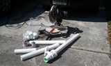 Gotta love mitre saws. Chopped the crappy fixtures off that old cannon in no time at all. Then I bought actual Schedule-40 fittings from the sprinkler shop down the straight. Cost an extra $5, but it's worth it for the safety.