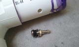 The valve was surprisingly difficult to get. The Discount down the street only carried rubber snap-in valves, rated to 40PSI. I wanted something more reliable, especially since I doubted the width of the PVC matched the width of a tire rim.